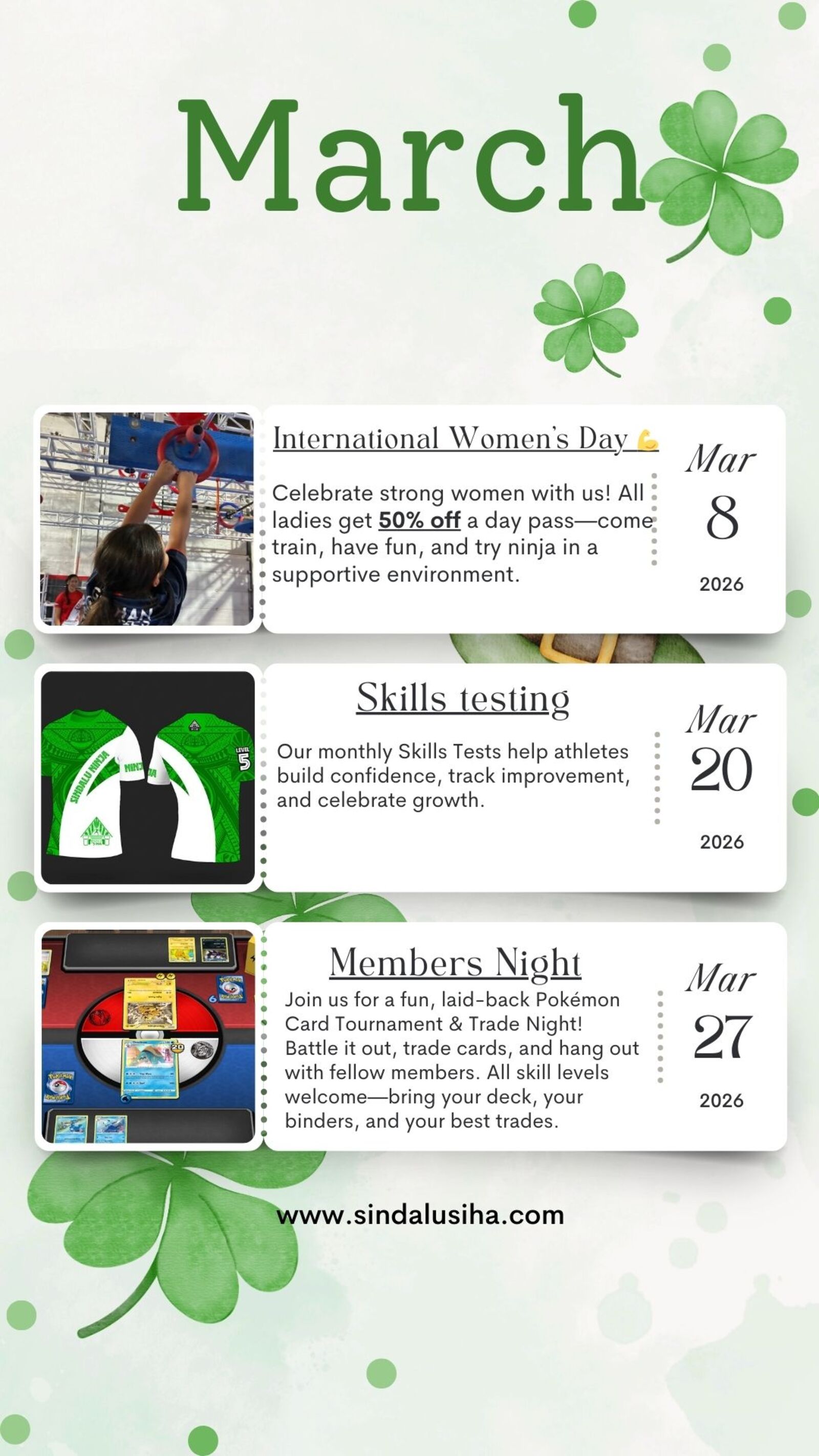 You can register for our competitions, including the Sindalu Ninja Games, directly through our website or in person at the gym.
